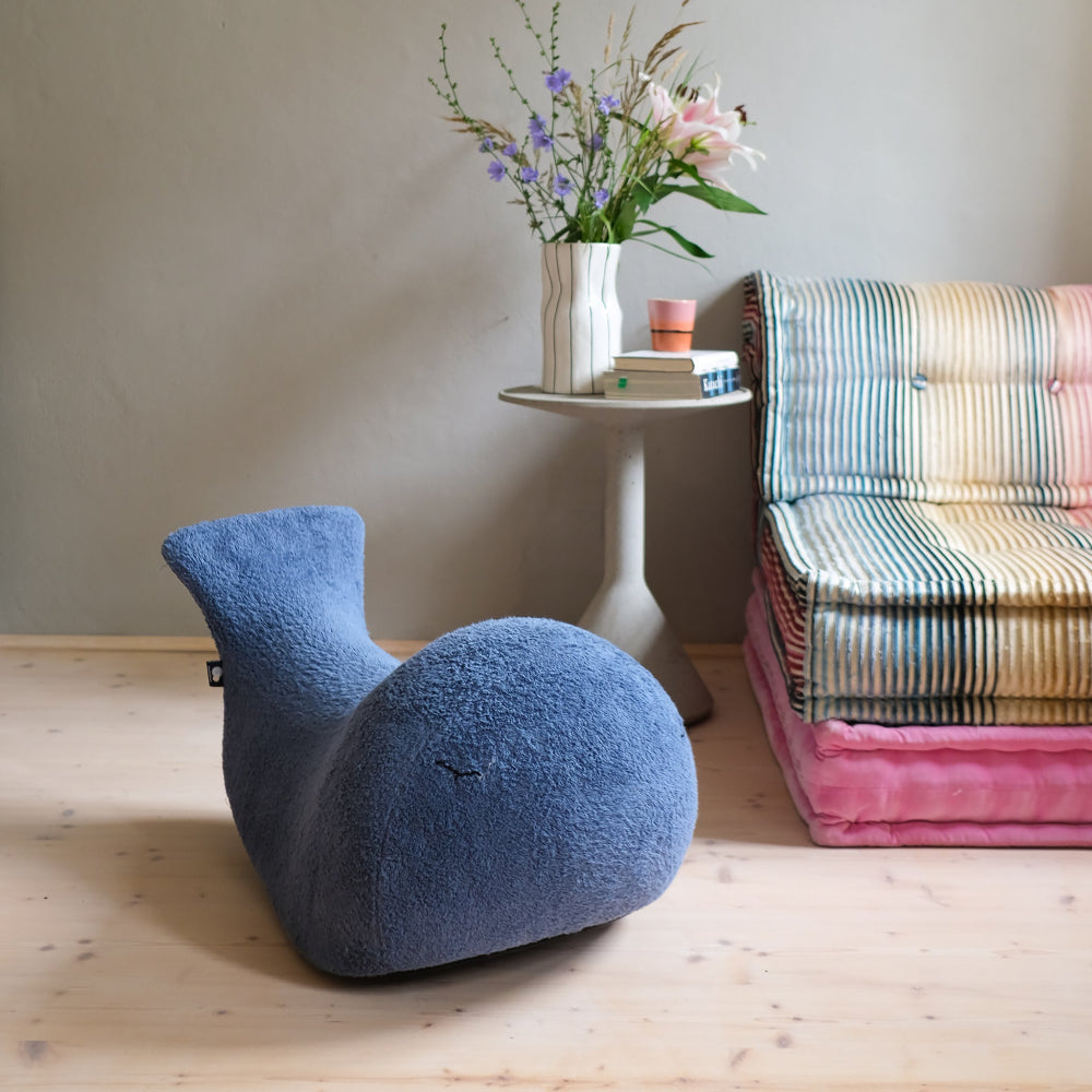 The rocking whale "ba" from bada&bou combines a playmate, cuddly friend and seat in one and aims to inspire the whole family and future generations. Let yourself drift on the waves, rock a bit or just dream on it and put your feet up a little in the evening... "ba" is happy to be there for you. The cover is made of a wool blend and has a soft and warm feel. The inside of the Rocking Whale is made of polyurethane foam, which forms a stable frame and thus enables safe and yet soft play. All Badabouts are currently only available in the color gray melange. With its cute shape and comfortable upholstery, it will quickly become a popular member of the family because it combines motor development with a timeless, elegant and sustainable design. The toy animals are sustainably produced by a high-quality furniture manufacturer in northern Italy with great attention to detail, high-quality materials and a timelessly elegant design.