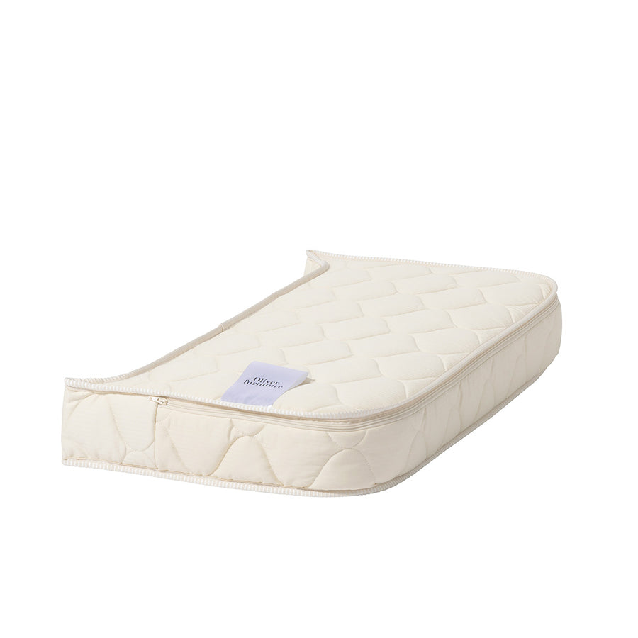 With the Oliver Furniture mattress extension for Wood Original beds with rounded corners, your junior bed mattress simply grows from a length of 160 cm to 200 cm when converted to a large bed, offering your child first-class comfort for many years. The mattress core is made of Oeko-Tex certified European HR cold foam, which is very comfortable, breathable and hypoallergenic, easily returns to its original shape after use and has a high load-bearing capacity. Density 28.5-33 kg/m3.