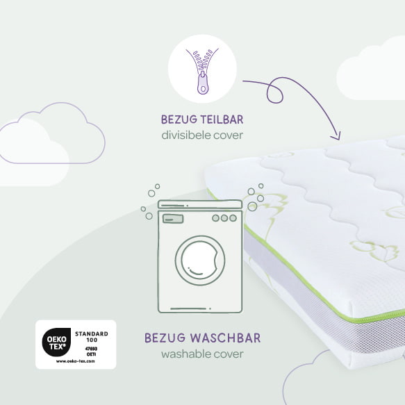 The mattress cover is easy to remove using the all-round zipper and can be washed in the washing machine up to 60°.