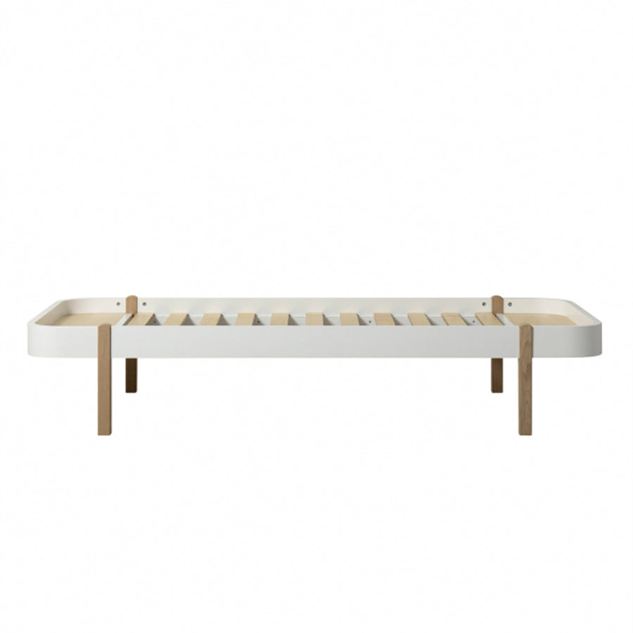 Der stylische Wood Lounger in weiß, mit Beinen in massiver Eiche, geölt von Oliver Furniture ist stilvolles Tagesbett und bequemes Bett in einem. Das schlichte und zeitlose Design macht den Lounger zu einem Allroundtalent passend sowohl für das Kinder-, oder Jugendzimmer als auch als Sitzgelegenheit im Wohnzimmer. Das besondere an den Oliver Furniture Möbeln, die verdeckten Schrauben, die runden Ecken und die fast unsichtbaren Übergänge die dem Möbel eine gewisse Leichtigkeit verleihen, finden Sie auch hier wieder. Der Umwelt zuliebe hergestellt mit dem Fokus aufs Detail, in nachhaltiger Produktion, mit ungiftigen Farben und Lacken und mit höchster Wertschätzung für natürliche Materialien. Das Bett ist auch als breitere Variante (120 cm) und auch jeweils mit weißem Gestell und weißen Beinen erhältlich.