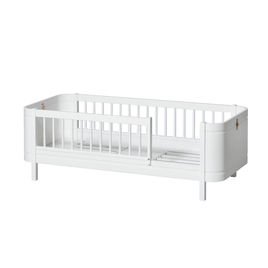 Das Kinderbett Wood Mini+ des dänischen Labels Oliver Furniture besticht durch sein einzigartiges Design und die langfristige Nutzungsmöglichkeit. Mit seinen großzügigen Maßen bei gleichzeitig schlanker Statur wächst das Juniorbett aus massiver FSC-zertifizierter Eiche und Birke mit Ihrem Kind bis ins Schulalter mit. Damit schafft Oliver Furniture nicht nur ein qualitativ hochwertiges, sondern auch nachhaltiges Möbelstück, das über Generationen hinweg Freude macht. Für extra Sicherheit sorgt der mitgelieferte Rausfallschutz, der bei Bedarf am Bett montiert werden kann.