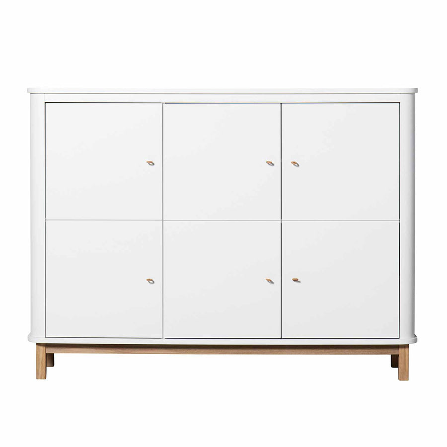 Der Multi-Schrank aus der Oliver Furniture Wood Collection hat absolutes Lieblingsstückpotenzial! Hier trifft Design auf Funktionalität und ermöglicht dadurch einen vielseitigen Einsatzbereich. Das schmale Format des Sideboards findet sogar Platz in einem engen Flur. Das Innenleben bietet drei schmale und drei breite Regalböden und hinter der linken Türe befindet sich eine Kleiderstange für die Breite von Kinderkleiderbügeln. So kann man Schuhe, Klamotten und Spielzeug stilgerecht verstauen.