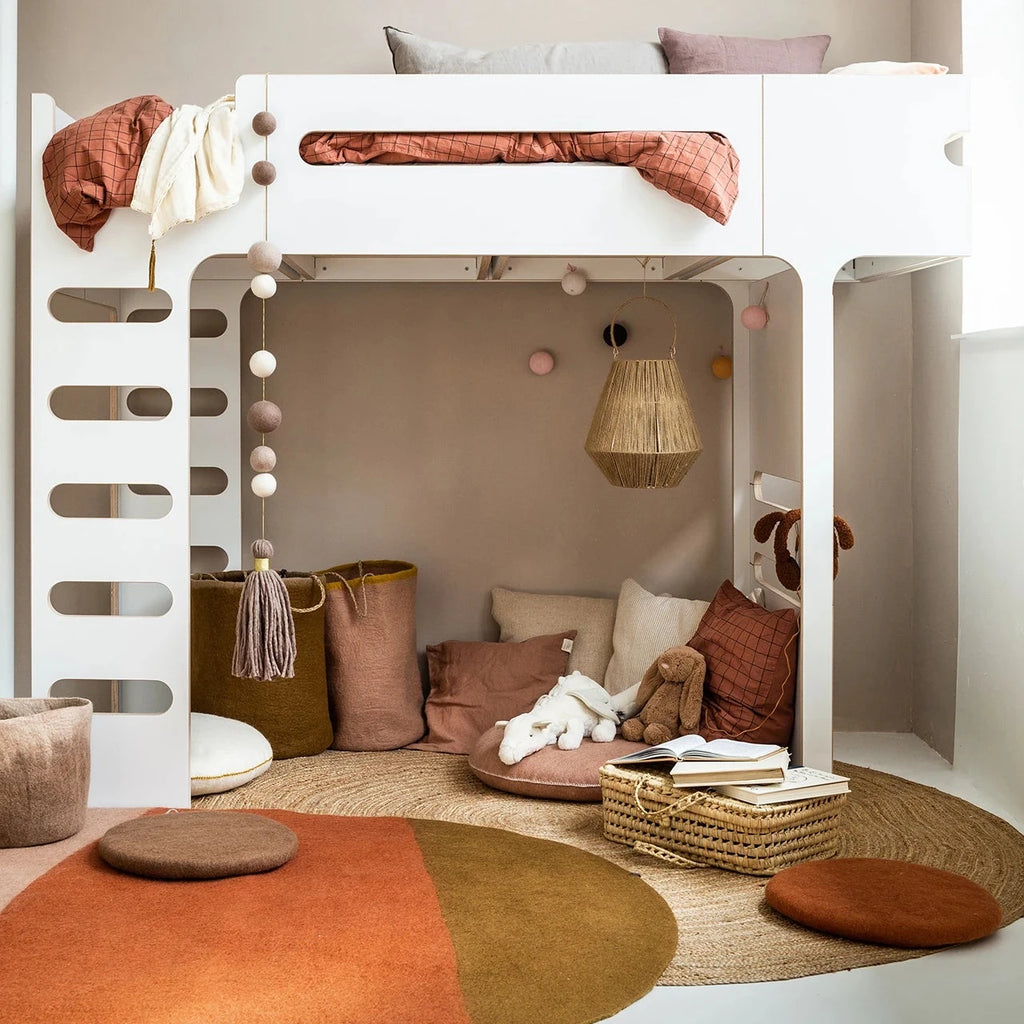 Das F-Hochbett kann mit dem Rafa-kids R-Kleinkindbett oder dem A-Teeniebett kombiniert werden, wenn sich Geschwister ein Zimmer teilen, und wird somit zum Etagenbett.